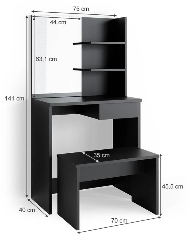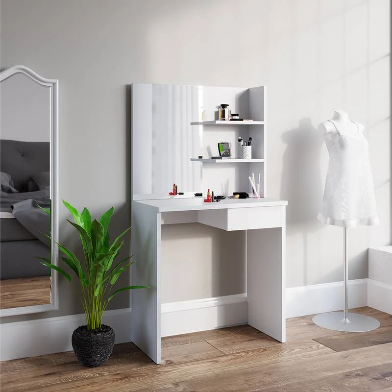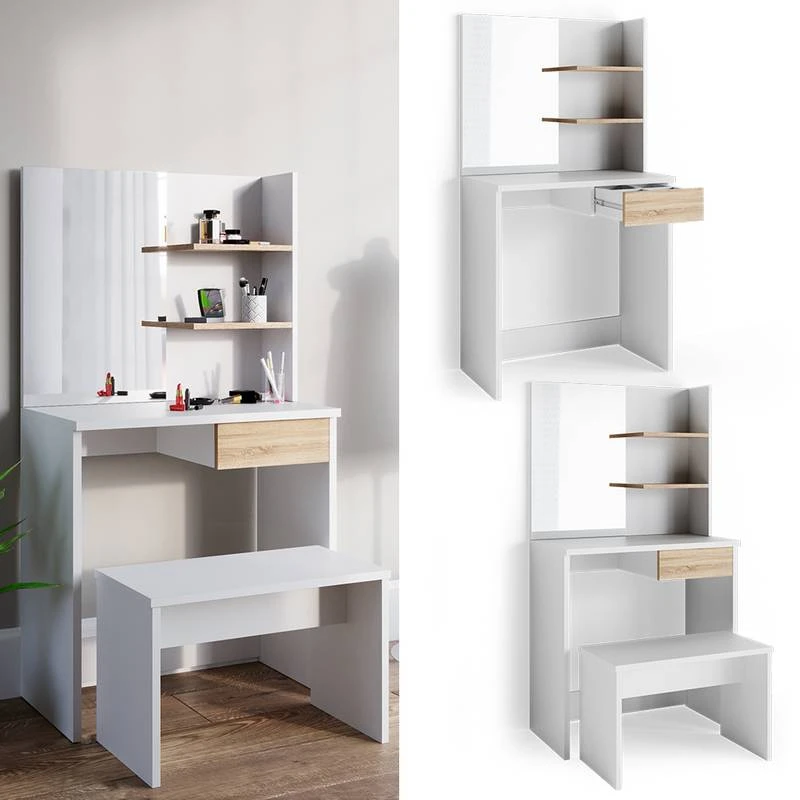 - Contenu de la livraison : • 1 table de maquillage Dekos + banc La décoration n’est pas comprise.