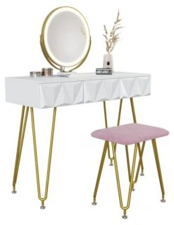 - Contenu de la livraison : • 1x coiffeuse• 1x tabouret design• 1x miroir LEDDécoration non incluse.