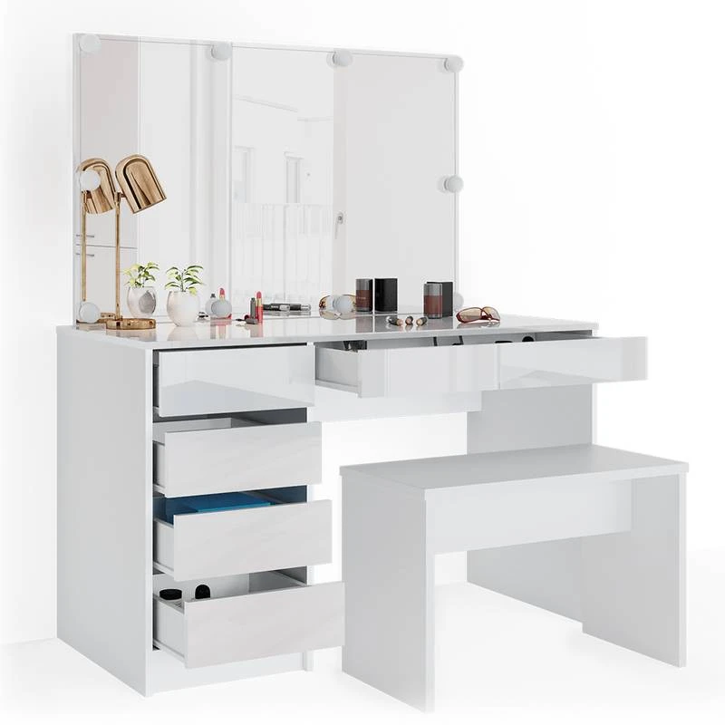 - Contenu de la livraison : • 1x coiffeuse• 1x banc• 1x guirlande lumineuseDécoration non incluse.