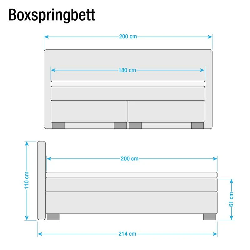 - Contenu de la livraison : lit boxspring avec surmatelas, sans accessoires