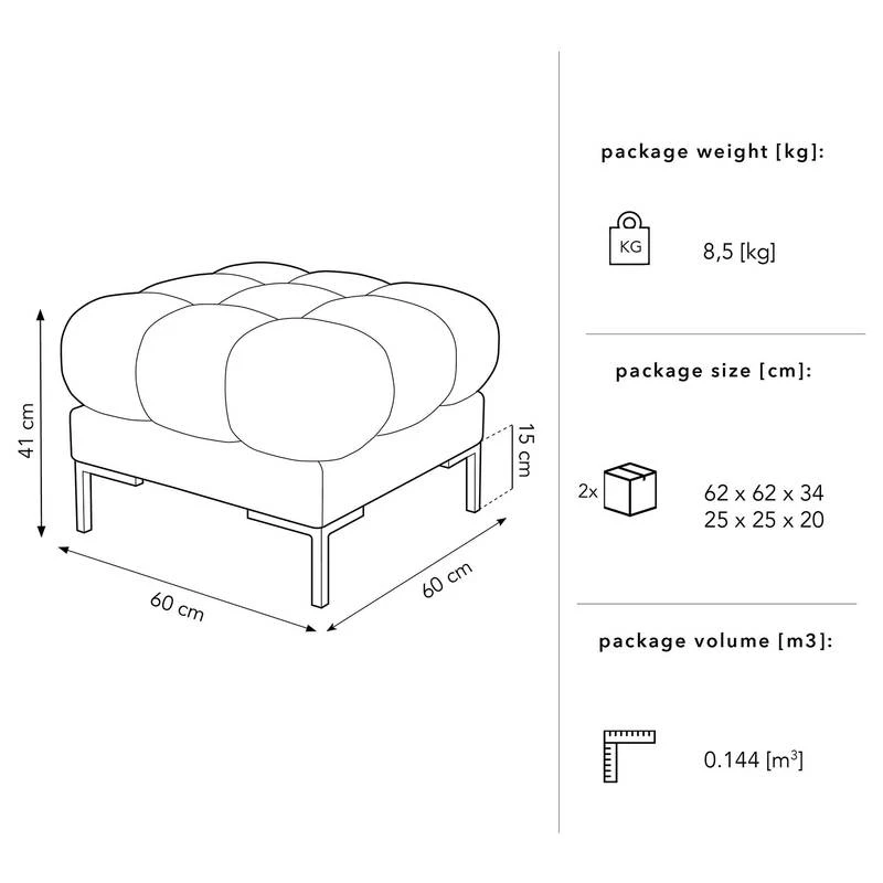 - Profondeur du pouf repose-pieds : 60 cm