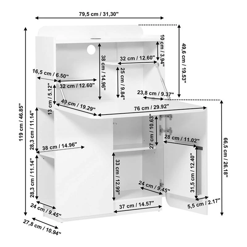 - 1 porte avec 1 étagère et 1 compartiment pour ordinateur portable