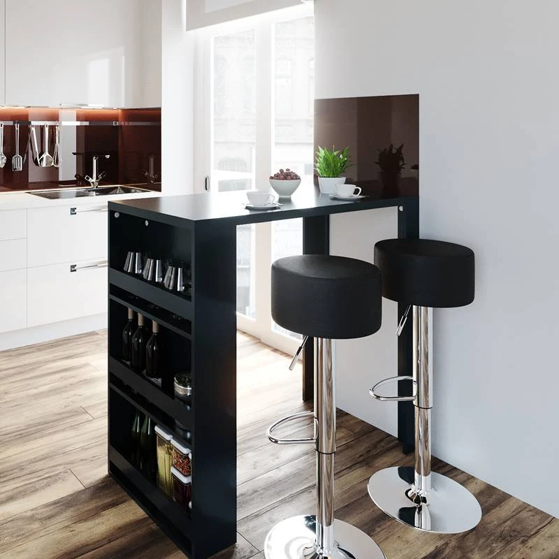 - Contenu de la livraison : • Table de bar avec étagère intégrée La décoration n’est pas comprise.