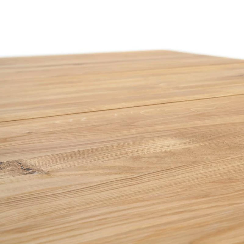- Plateau de table et colonne de pied : chêne sauvage massif huilé et ciré