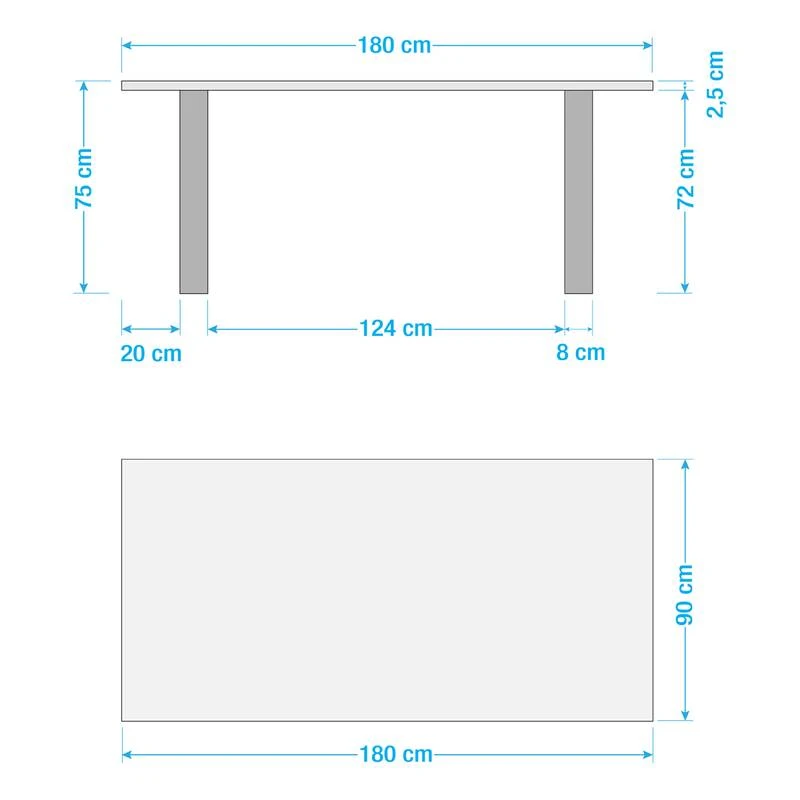 - Épaisseur plateau : 2.5 cm