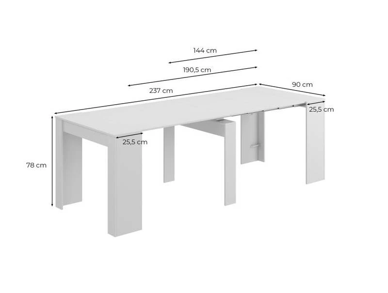 - Largeur maximale de la table : 237 cm