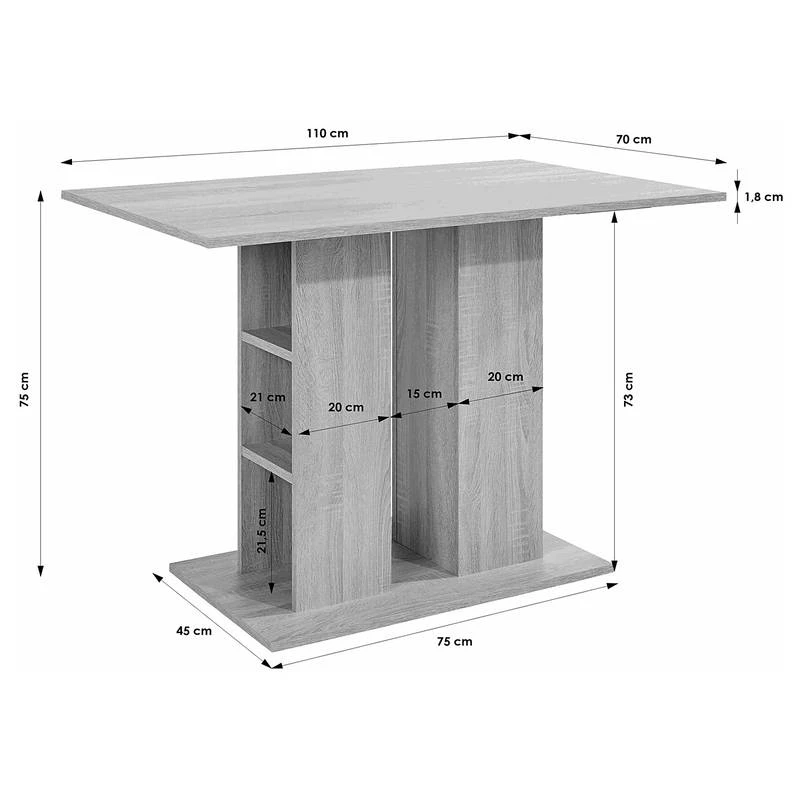 - Hauteur du bord inférieur du cadre de table : 73 cm