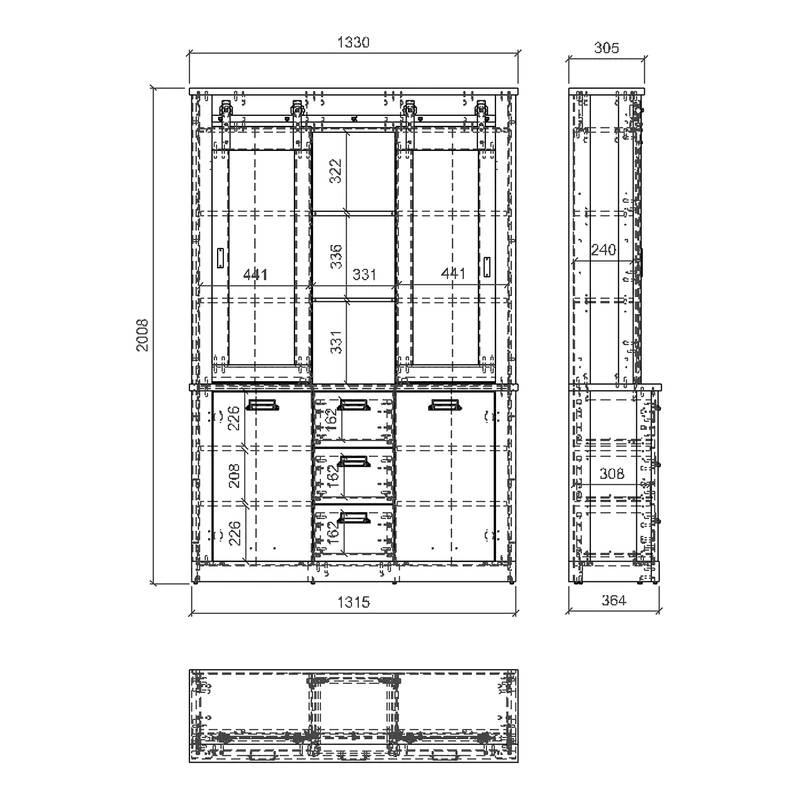 - Autres caractéristiques : 2 portes coulissantes avec fermeture manuelle