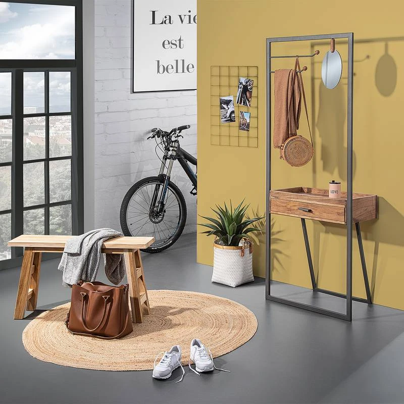 - Tiroir et crochets à vêtements : acacia