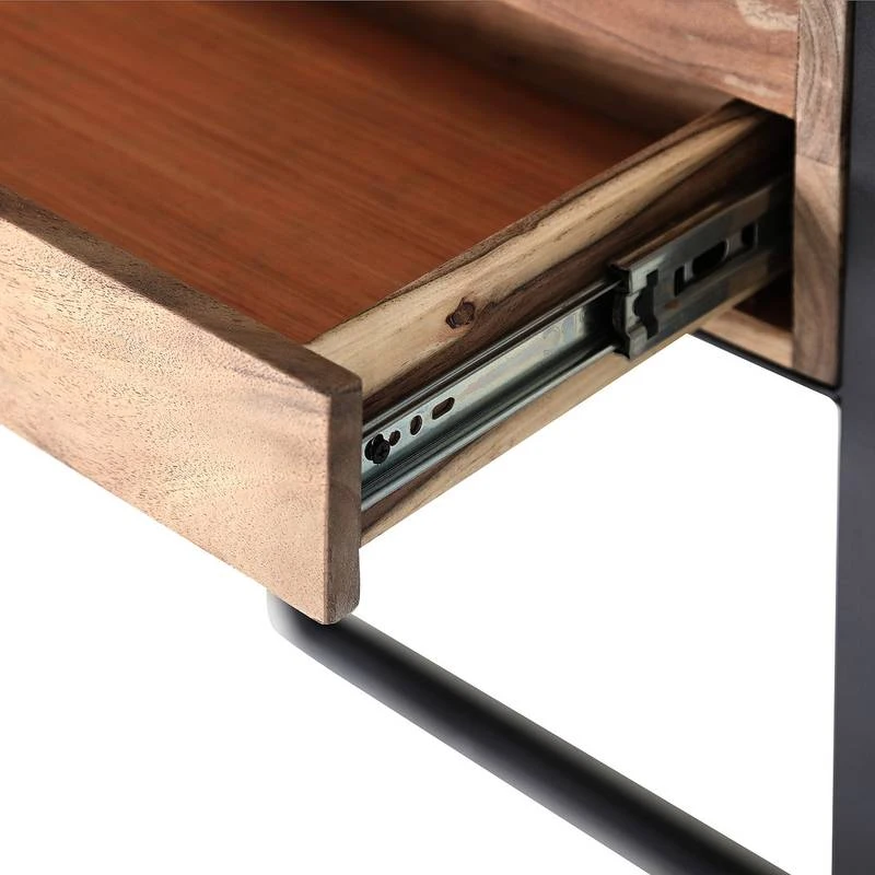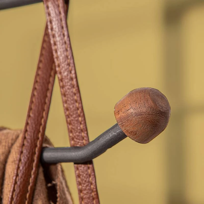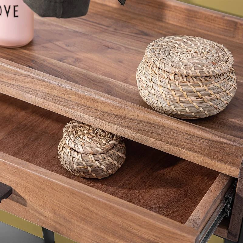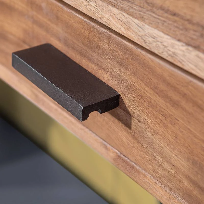 - Tiroir et crochets à vêtements : acacia massif fumé et verni