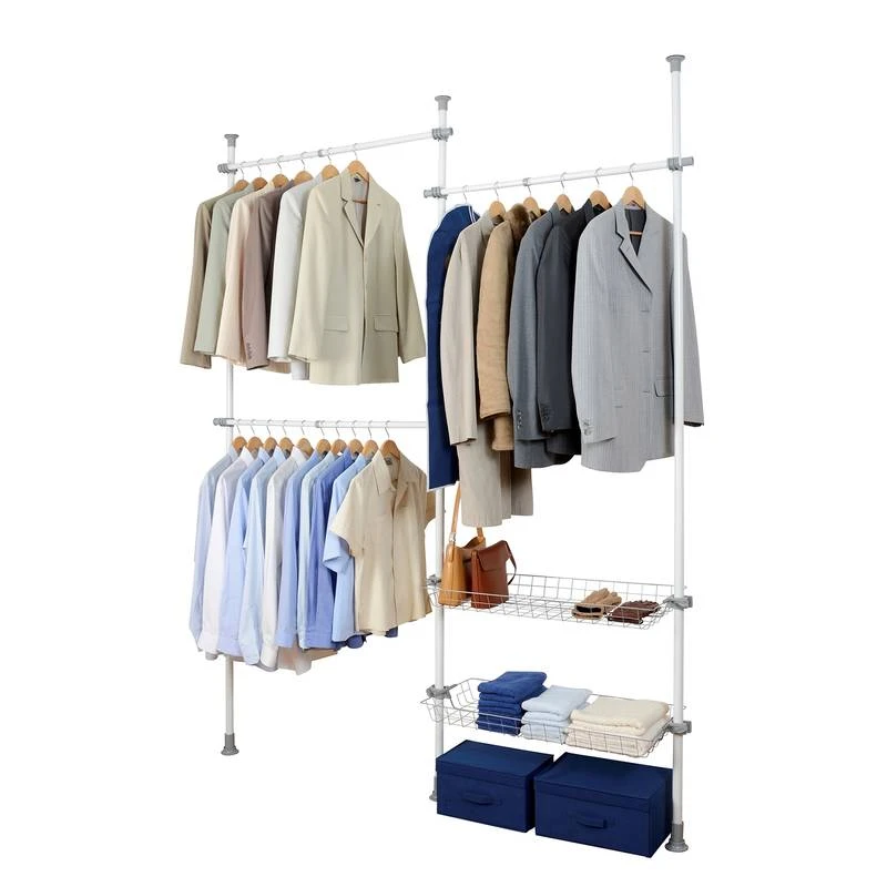 - Système de rangement réglable individuellement avec 3 portants à vêtements réglables en hauteur en continu